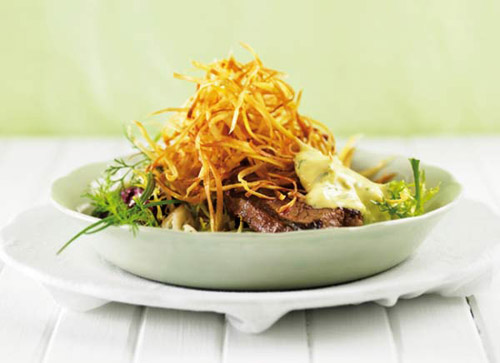 9. Thịt xiên nướng với khoai lang sợi và sốt Bearnaise