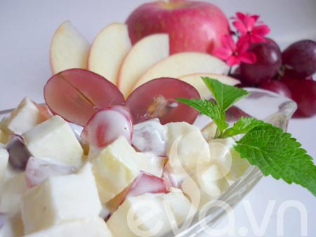 Bạn có thể lựa chọn táo, nho để làm món salad đơn giản này. Dĩ nhiên xốt mayonnaise là không thể thiếu rồi.