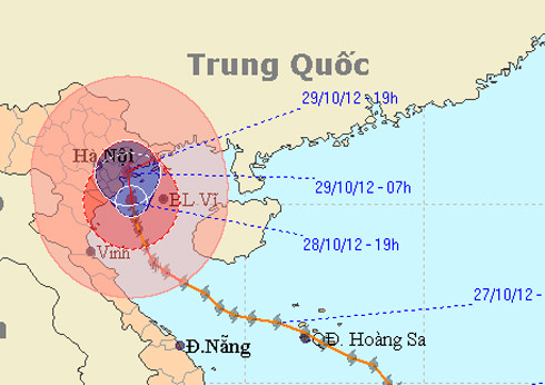 Trung tâm dự báo khí tượng thủy văn cho hay, đêm 28/10 và sáng 29/10, bão di chuyển chủ yếu theo hướng bắc với tốc độ 10 km mỗi giờ. Đến 7 giờ sáng 29/10, tâm bão trên vùng bờ biển các tỉnh Hải Phòng - Thái Bình với cường độ giảm còn cấp 8-9, sau đó suy yếu dần thành áp thấp nhiệt đới.