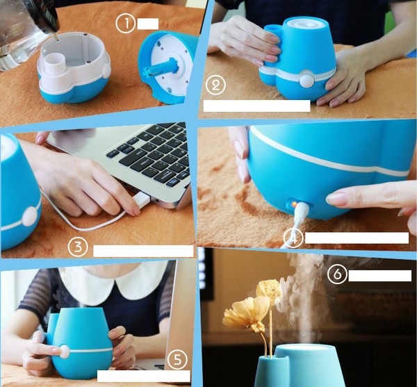 Làm việc thường xuyên trong môi trường sử dụng máy điều hòa tại các văn phòng về lâu về dài sẽ ảnh hưởng đến làn da của chị em phụ nữ, khiến da khô và xấu dần. Chính vì thế, sắm một chiếc máy phun sương mini tạo độ ẩm đặt trên bàn làm việc là cực kỳ cần thiết. Sản phẩm được thiết kế nhỏ gọn, bạn chỉ cần sử dụng cáp USB kết nối với máy tính nên rất dễ sử dụng. Bên cạnh đó còn có ngăn nhỏ để bạn cắm hoa trang trí nữa đấy. Nếu thích có thể cho thêm vài giọt tinh dầu để tạo mùi hương thư thái. Sản phẩm có kích thước 11.3 x 11.6cm, giá thành khoảng 95.000 đồng/chiếc.