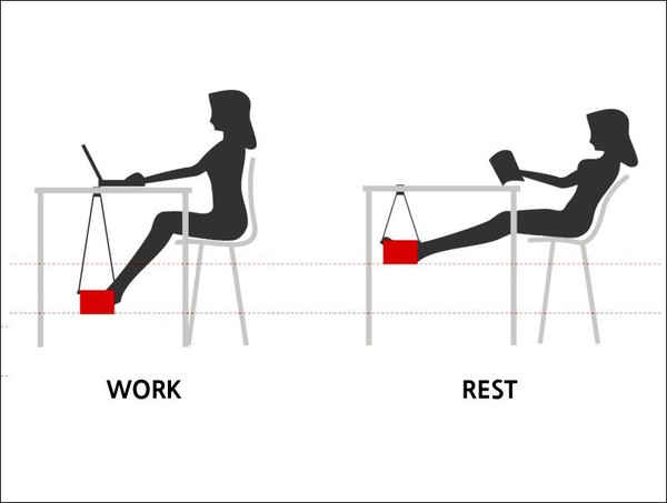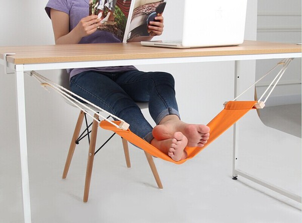 Tư thế khi ngồi làm việc là vô cùng quan trọng, nó ảnh hưởng rất nhiều đến hiệu quả công việc. Ngồi hàng giờ trước máy vi tính sẽ ảnh hưởng đến mắt, cột sống,… gây tình trạng mệt mỏi. Vậy làm thế nào để các chị em công sở có thể thư giãn ngay tại chỗ ngồi mà chẳng cần phải đi đâu xa? Chiếc võng này chính là một đồ dùng tiện ích hoàn hảo dành cho bạn. Nó được thiết kế để lắp đặt bên dưới bàn làm việc, chiều cao có thể thay đổi để bạn thay đổi tư thế và thư giãn đôi chân giúp máu lưu thông dễ dàng. Sản phẩm có kích thước 65.5 x 15.5cm, giá thành khoảng 110.000 đồng/chiếc.