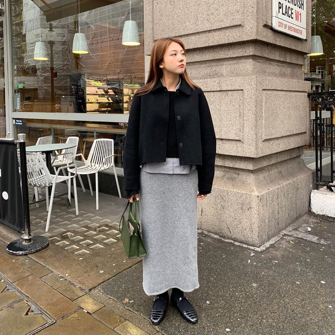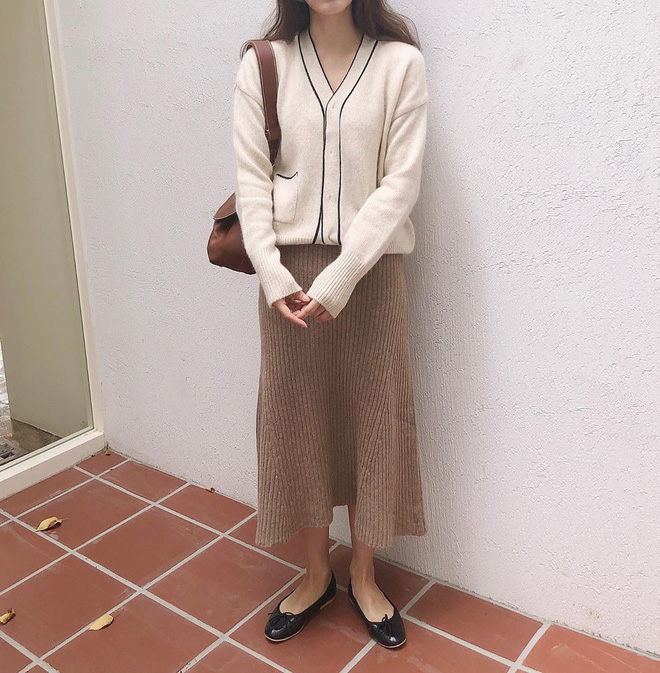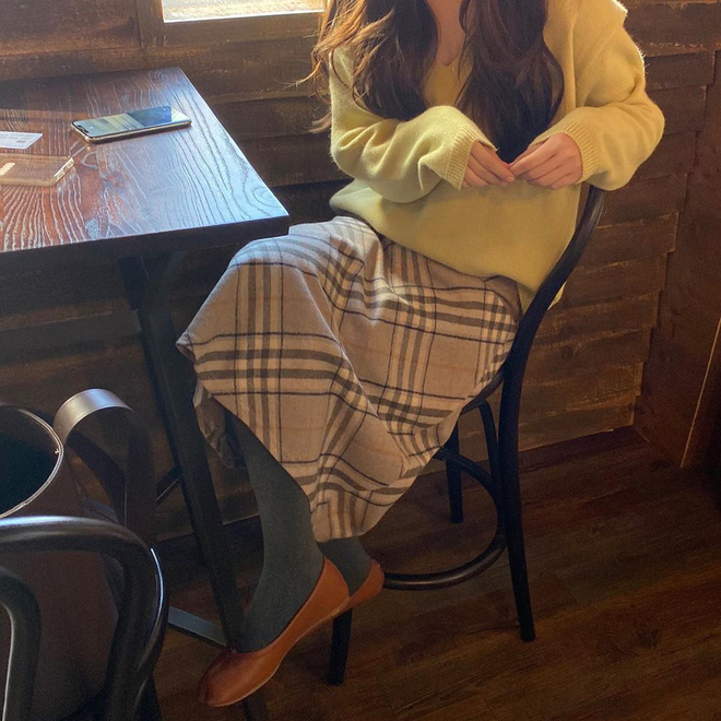 Hội sành mặc xứ Hàn cũng đồng lòng lăng xê chân váy len tăm thanh lịch, nhã nhặn hết nấc. Tất nhiên, nếu muốn nâng điểm phong cách và lên đồ đỏm dáng tiểu thư quyến rũ thì "quẩy" item này là quyết định đúng đắn, ai cũng nên thử ít nhất một lần.
