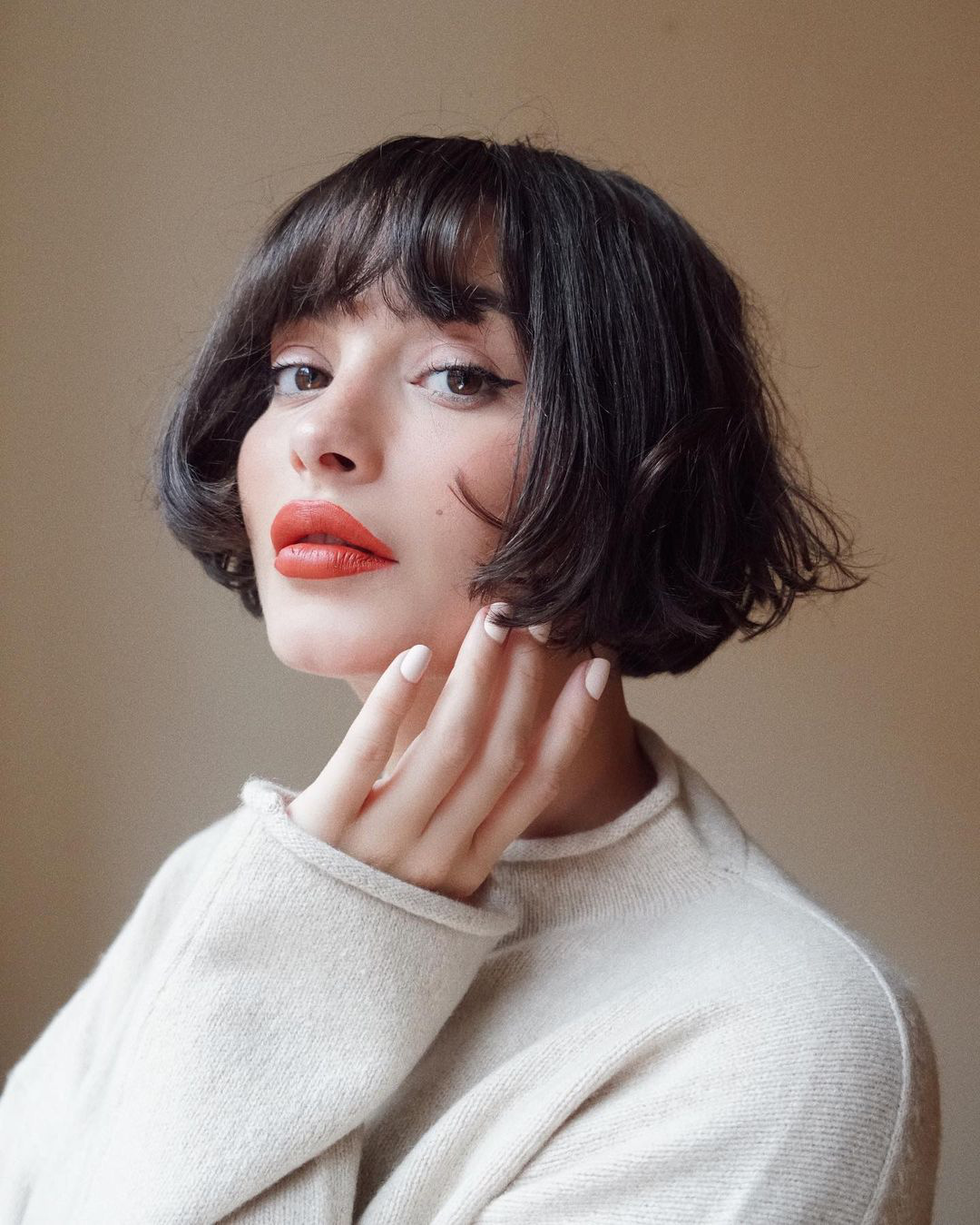 Vẫn là kiểu tóc bob dài đến xương quai hàm, mái dài nhưng điểm mấu chốt của kiểu tóc này chính là độ rối nhẹ, đủ để khiến cho diện mạo của chủ nhân tăng gấp bội phần cá tính và phóng khoáng, nhưng không làm mất đi độ chỉn chu. Thêm một lưu ý nữa, nếu bạn vén gọn một bên tóc như quý cô người Pháp trên đây, vẻ ngoài sẽ càng thêm sang trọng, tinh tế và cuốn hút đấy.