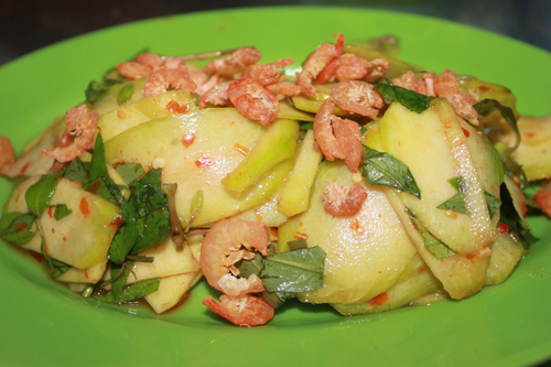 Món ăn được nhiều người ưa thích bởi vị chua chua từ xoài xanh, kèm theo vị của tôm khô khiến món này trở nên lạ miệng. Bạn có thể ghé số 4 Nguyễn Thị Diệu để thưởng thức.