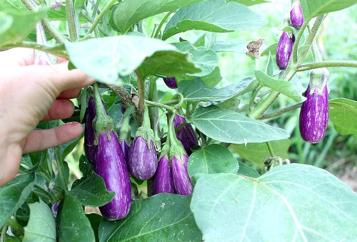 - Khi vỏ quả cà căng đều, chuyển dần sang tím nhạt là thu hoạch được. Thu hái cà tím khi quả đã lớn đẫy, căng đều, vỏ bắt đầu chuyển từ màu tím sang tím nhạt. Cách 2-3 ngày thu chọn một lần, không để cà quá già sẽ kém chất lượng.