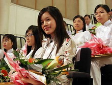 Các nữ thủ khoa rạng ngời trong ngày lễ nhận giải. (Ảnh: Khánh Chi) |