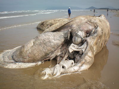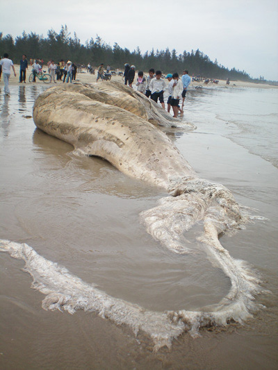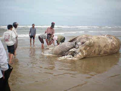 Ảnh cá voi hơn 9 tấn dạt vào bờ biển Hà Tĩnh