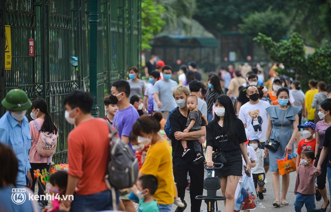 Các lối vào công viên đều kín khách. Đây là hình ảnh khá lâu rồi mới xuất hiện tại công viên Thủ Lệ do thời gian qua, các công viên ở Hà Nội phải đóng cửa phòng dịch Covid-19