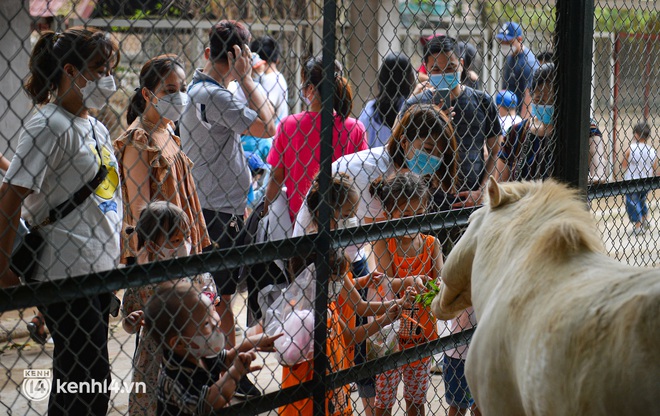 Ảnh: Hàng nghìn người dân đổ về công viên Thủ Lệ vui chơi ngày cuối tuần, trẻ em chen chân cho thú ăn