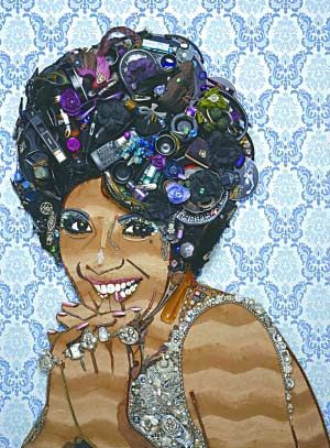 Chân dung nữ danh hài Margaret Cho được xây dựng từ những vật dụng gắn liền với gốc gác Hàn Quốc của Cho. |