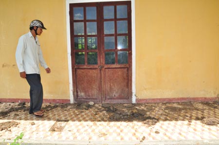 Nhà tái định cư bỏ hoang, phân trâu bò lênh láng ở thềm nhà. |