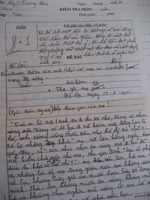 * Dưới đây là bài văn của Hiếu đã gây “sốc” với giáo viên trường THPT Hà Nội - Amsterdam.