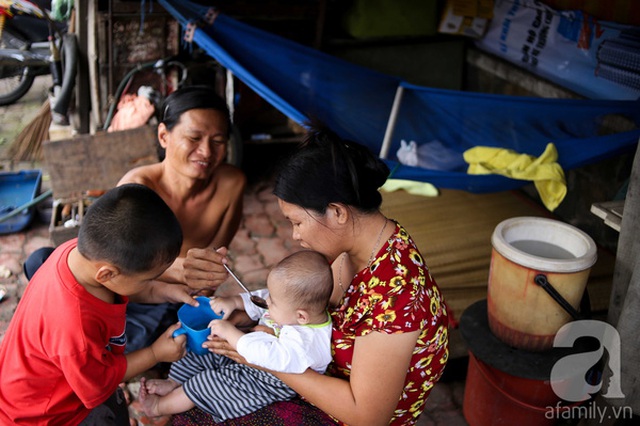 Đây là khẩu phần bữa ăn thường thấy của cả gia đình. "Mình khó khăn quá cũng chịu đươc, chỉ thương các con ăn uống kham khổ. Thằng bé chỉ mơ được dẫn đi công viên chơi mà tôi cũng khó lòng thực hiện được", anh Hồng buồn nói.