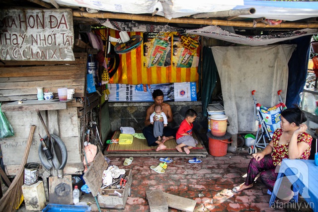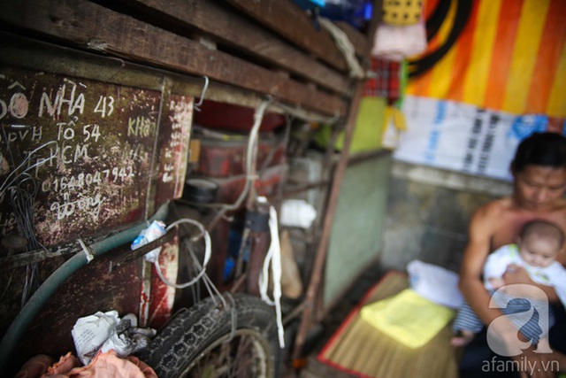 Trong túp lều có hai tấm ván kê làm chỗ ngủ, cái bếp gas nhỏ và chiếc xe đẩy đựng đồ nghề của anh Hồng. "Ở đây nắng thì nóng, mưa thì dột, đêm ngủ thì bất an. Mấy bạn tôi bị mất đồ nghề, cái cái xe đạp quý nhất cũng bị lấy, lâu lâu lại bị bọn nghiện dí kim tiêm xin tiền", anh Hồng chia sẻ.