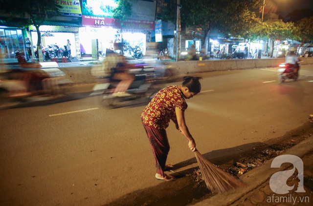 Những lúc rảnh rỗi, chị Mận lại ra quét dọn đường phố gần chỗ mình ở.