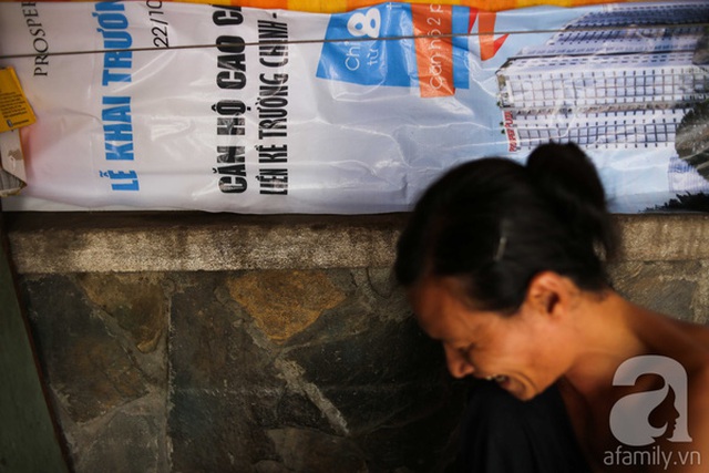 Bữa ăn của hai vợ chồng thiếu trước hụt sau. Để tiết kiệm, họ phải đợi đến tối muộn mới mua rau của xe đẩy đi ngang qua. "Thịt thì mình mua thịt vụn, cá lâu lâu có người đi câu được mang cho. Tôi ít đi chợ lắm", chị Mận cho biết.