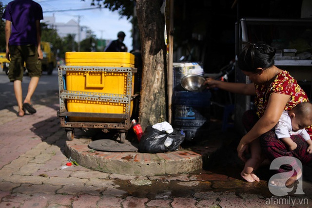 Còn chị Mận thì kê thêm cái thùng đá bán nước ướp lạnh. Những ngày mùa mưa. nước vẫn còn y nguyên trong tủ. Chồng vá xe, vợ bán nước, thu nhập chỉ đủ để họ mua miếng rau, ký gạo mưu sinh qua ngày. Khi anh bận trông con, chị thay anh bơm, vá xe cho khách.