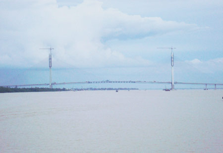 Cầu Cần Thơ đã được nối liền (ảnh chụp từ phà Cần Thơ) |