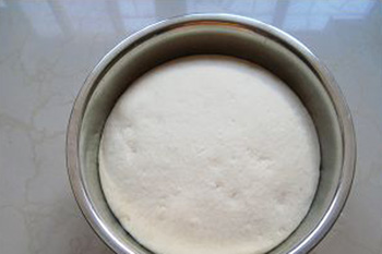 Bước 1: Trộn đều bột mì và men, sau đó thêm nước vào nhồi thành một khối bột ẩm. Đậy kín bằng một màng bọc thực phẩm ở nhiệt độ thường cho đến khi khối bột nở gấp đôi so với ban đầu.