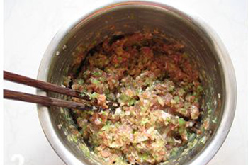 Phần nhân: - 300 g thịt lợn - Ray mùi, gừng, hành tây, hẹ - Nước tương, tiêu, muối, đường - Hạt mè, rượu nấu ăn