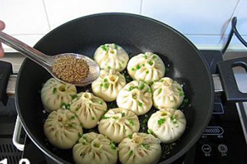 Thay vì hấp, những chiếc bánh bao nhỏ xíu sẽ được làm chín bằng chảo chống dính để có một hương vị khác biệt.