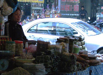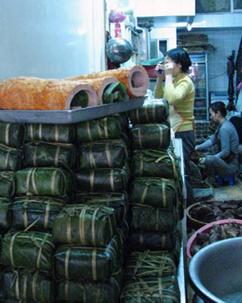 Còn tại cửa hàng Đức Minh trên phố Trần Xuân Soạn, giò chả, bánh chưng thành phẩm đã được bày khá nhiều. Chị Bùi Thị Sinh, chủ cửa hàng nói, ngay từ ngày mùng 10 âm, nhà chị đã nhận được các đơn đặt hàng. Đáng kể là một đơn vị bộ đội tại Đà Nẵng năm nào cũng đặt giò chả, bánh chưng nhà chị mỗi loại hàng trăm cân hay một cơ quan thuộc Bộ Xây dựng đã đặt 100 cân giò làm quà Tết cho nhân viên.