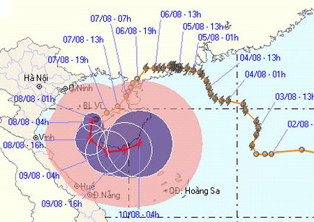 Ngoài ra, do ảnh hưởng của siêu bão Morakot đang hoành hành ở phía Bắc đảo Đài Loan, vùng biển ngoài khơi các tỉnh từ Đà Nẵng đến Cà Mau, khu vực giữa và Nam biển Đông có gió mạnh cấp 8. Riêng khu vực Đông Bắc biển Đông mạnh cấp 10, giật cấp 12. Sóng biển cao tới 5 mét.
