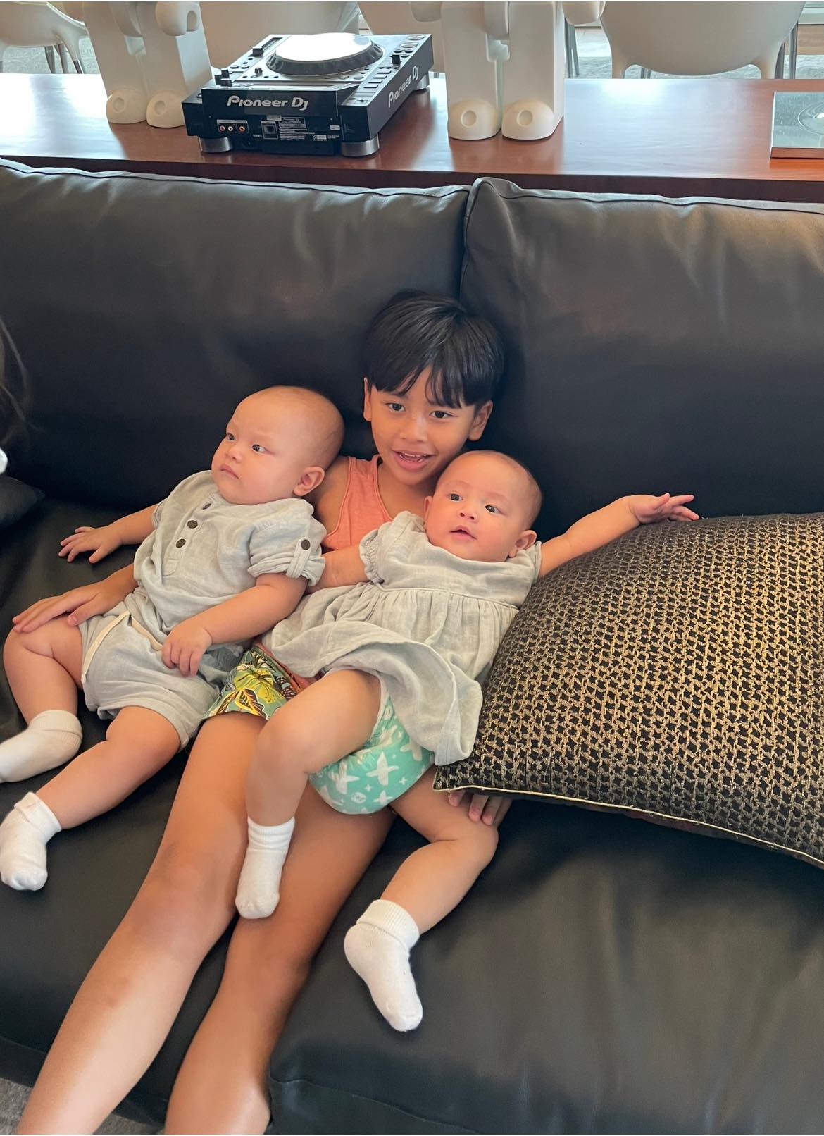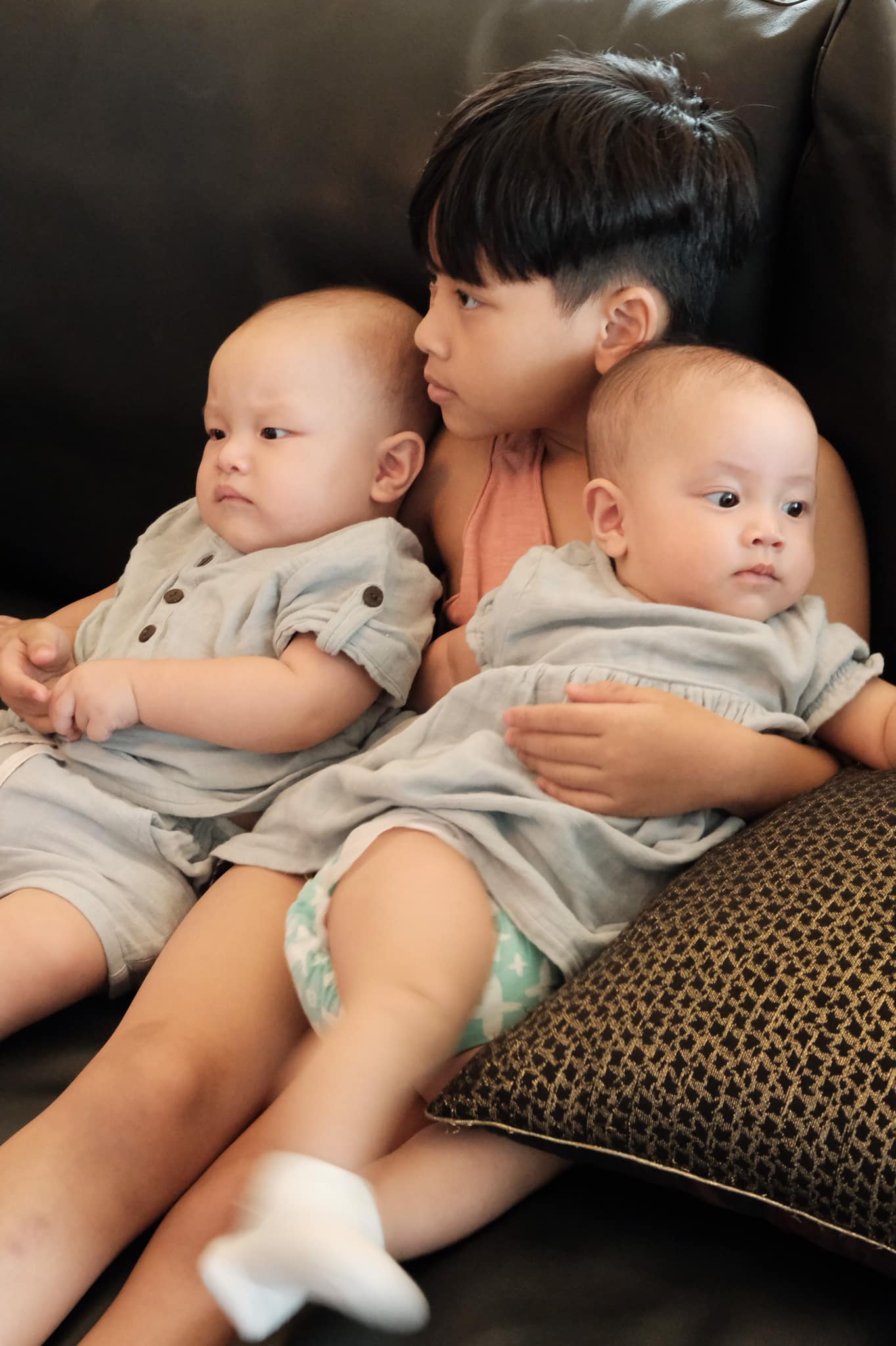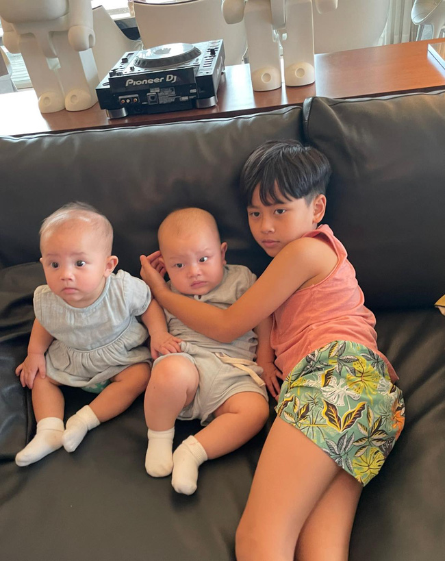 Tuy nhiên, lúc chụp ảnh cùng một bé trai lớn tuổi hơn thì biểu cảm của Leon và Lisa lại hoàn toàn khác biệt nhau. Khi được anh lớn ôm ấp rất tình cảm, Lisa nở nụ cười xinh xắn, nhỏ nhẹ, còn Leon thì lại phụng phịu, nhăn nhó như đang không hài lòng chuyện gì đó.