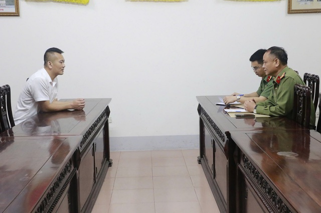 Đối tượng Tôn Quý Hòa tại cơ quan công an.