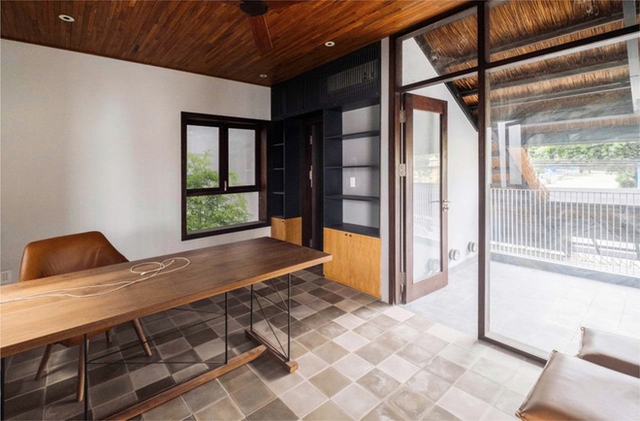 Ngôi nhà kế thừa nét kiến trúc dân gian với các thớt mái lá rộng, khoảng hiên nép dưới mái lá.