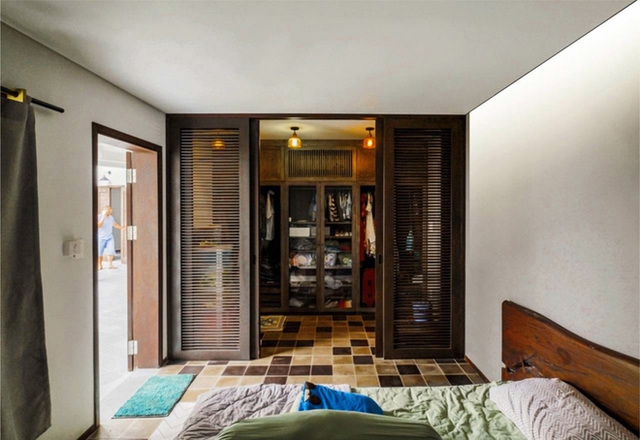 Sàn gạch hoa bố trí tông màu ngẫu hứng, đầu giường sử dụng gỗ mộc hay các bức vách dạng cửa chớp khiến phòng ngủ có cảm giác gần gũi, thân thuộc.