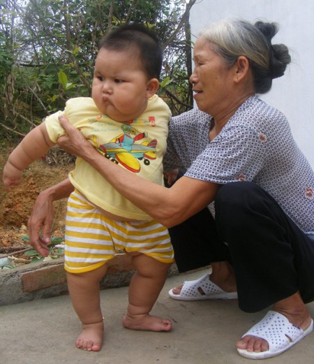 Lúc sinh ra bé hoàn toàn khỏe mạnh, cân nặng 3,6kg. Chỉ có điều, bé lớn nhanh như thổi, mới 10 tháng nhưng đã nặng đến 17kg và cao gần 1 mét.