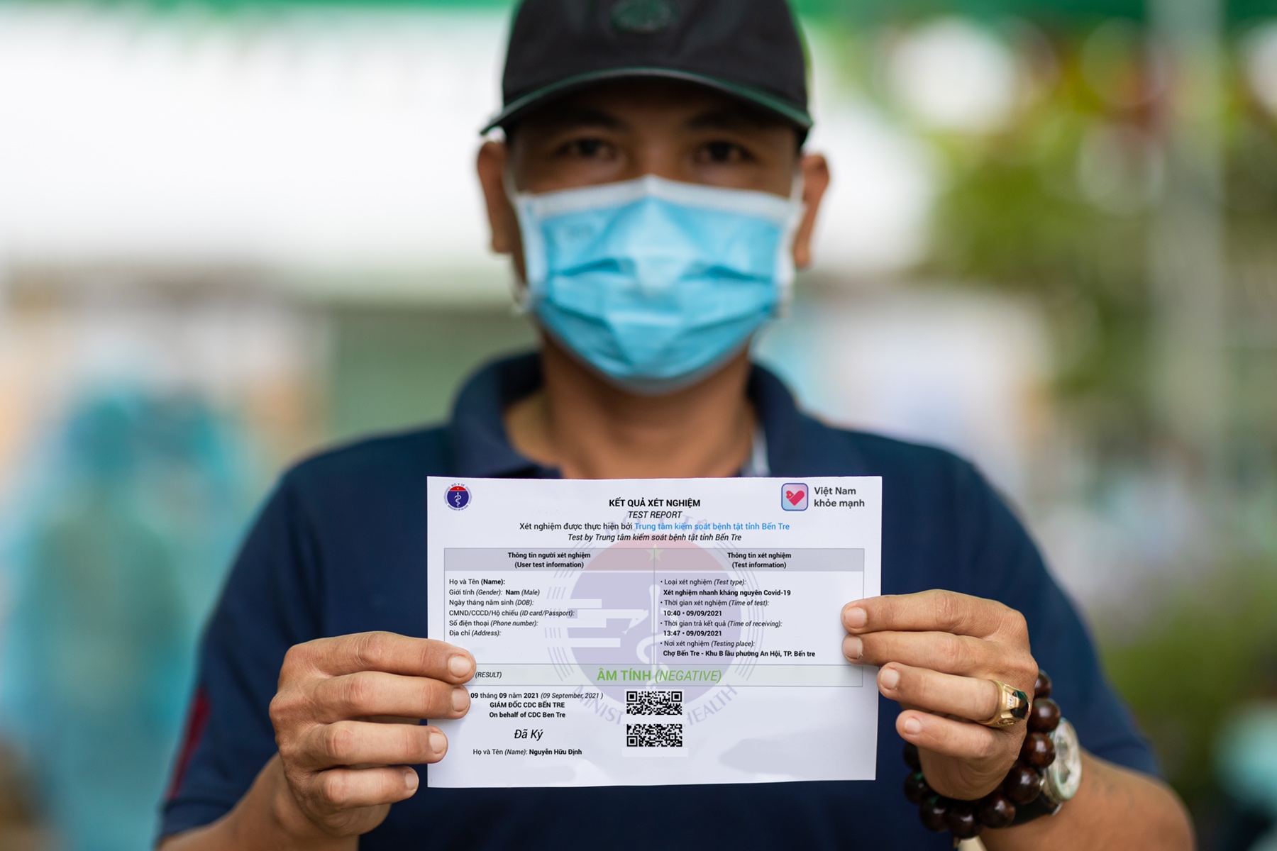 Đến 10/9/2021, trên toàn bộ tỉnh Bến Tre đã thực hiện xét nghiệm đồng loạt qua nhiều vòng, cách nhau mỗi 72h cho 273.636 mẫu đại diện cho 1.094.544 nhân khẩu trên toàn tỉnh với ghi nhận 7 "vùng xanh an toàn". Hàng triệu người dân bắt đầu giai đoạn bình thường mới với ứng dụng giải pháp công nghệ không tốn kém, trong khi chưa có đủ vắc xin.