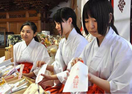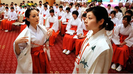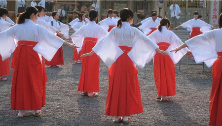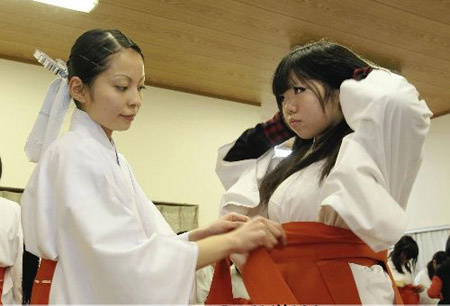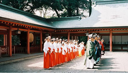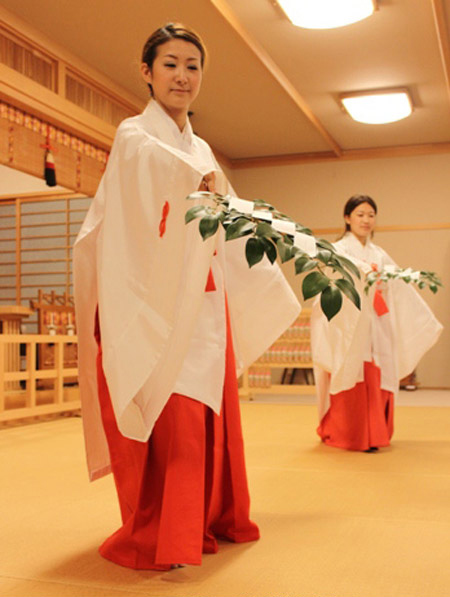 Phục vụ trong các đền thờ thần đạo Nhật Bản có miko - những “trinh nữ hiến thần” trẻ đẹp. Nếu muốn lấy chồng, họ sẽ phải ra khỏi đền.