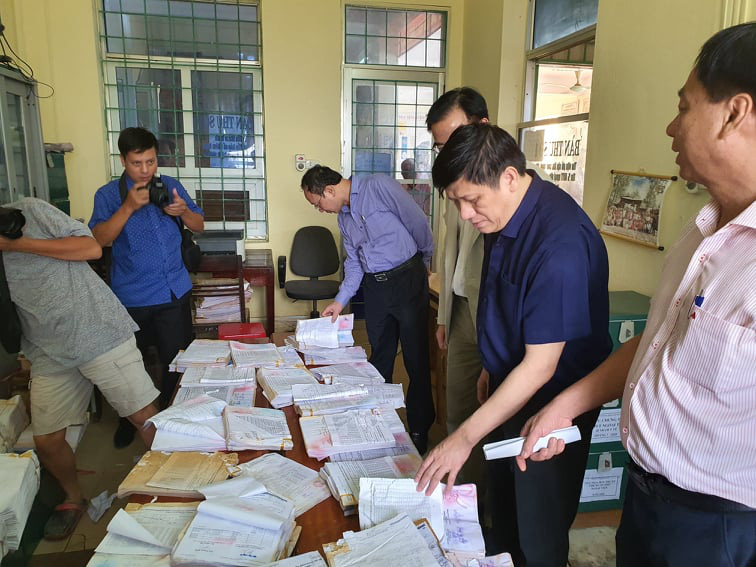 Quyền Bộ trưởng trực tiếp kiểm tra hệ thống cơ sở vật chất, thiết bị văn phòng tại Bệnh viện Đa khoa huyện Lệ Thủy (Quảng Bình). Ảnh: T.D