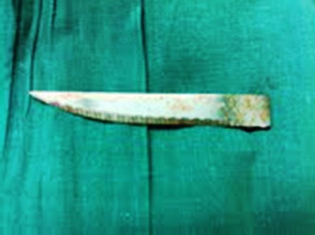 Chiếc dao lam đâm thấu tim anh Sơn được các bác sỹ gắp ra. |