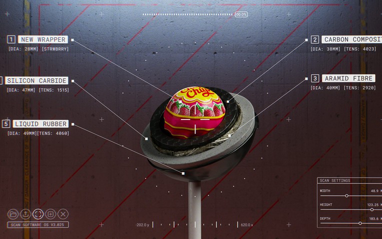 Hợp tác cùng BBH London, thương hiệu này đã tạo ra một lớp vỏ ngoài được chế tạo siêu phức tạp, nghe giống như sản phẩm trong phòng thí nghiệm hơn là một món đồ ngọt. Chiếc kẹo mút được niêm phong trong một lớp vỏ composite carbon gia cố bằng sợi aramid, phủ silicon carbide và hoàn thiện bằng cao su lỏng. Đây đều là những vật liệu dùng trong công nghiệp mà bạn hiếm khi nghe tới. Kết quả là một loại bao bì được thiết kế để chống lại lưỡi dao, nhiệt độ và cả sức mạnh tay không của hầu hết mọi người.
