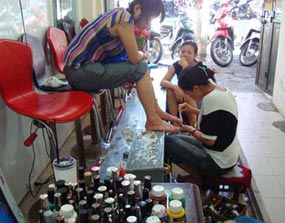 Điều đáng lo ngại là hầu hết người sơn móng đều sử dụng loại sơn rẻ tiền, không rõ nguồn gốc. Ngoài ra, việc dùng chung dụng cụ để cắt, bấm móng còn dẫn đến nguy cơ mắc các bệnh truyền nhiễm như viêm gan B, HIV…
