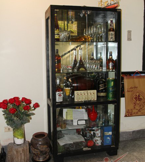 Một góc phòng khách gây ấn tượng với chiếc tủ chứa rượu ngoại. |