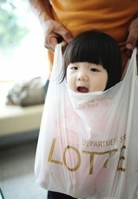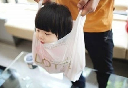 Bố cho con vào túi ni-long rồi xách đi