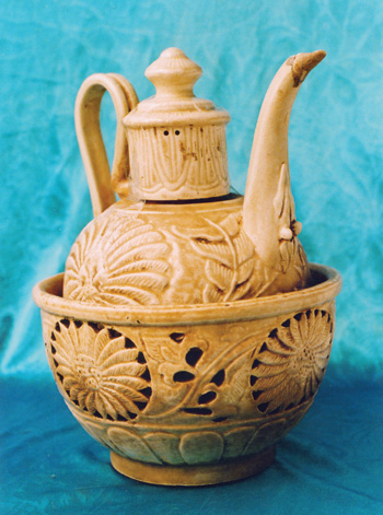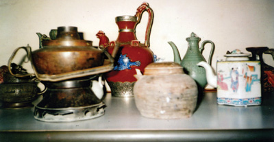 Trong bộ sưu tập của ông có nhiều chiếc ấm ở các vùng gốm khác nhau. Chiếc ấm từ vùng gốm Chu Đậu giống quả mít, hơi sứt vòi, chiếc ấm được trục vớt ở một con tàu đắm tại Cù Lao Chàm bị hà bám nhiều, nhưng vẫn để lộ men hoa xanh nhã nhặn. Lại có chiếc ấm gốm trắng, được làm cầu kỳ, hình con chích chòe báo tin vui, vòi ấm là cái miệng con chim đang hé mở...