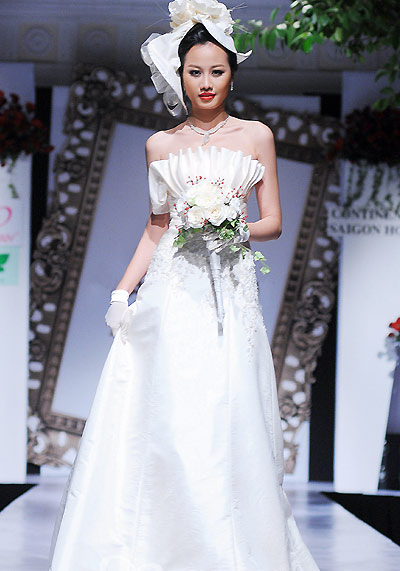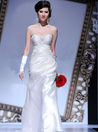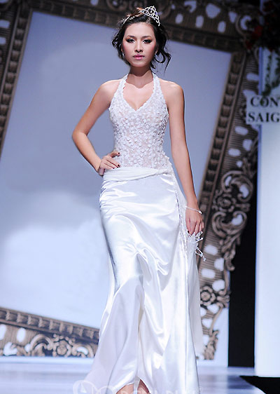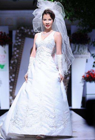Nắm bắt xu hướng thời trang cưới thế giới, bộ sưu tập cưới "Sóng tình" của thương hiệu Demy Duy được sáng tạo theo phong cách hiện đại, sang trọng và quyến rũ nhờ những chất liệu quen thuộc như satin, taffet, voan, ren... kết hợp cùng các vật liệu trang trí kim sa, các loại hạt kết cao cấp và đặc biệt là pha lê Swarovski.