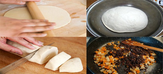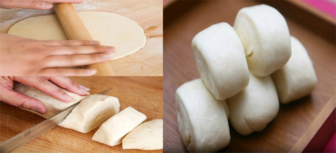 - Sau khi hết thời gian ủ bột, bạn lấy khối bột ra mặt phẳng có phủ một lớp bột áo, nhào lại nhiều lần cho đến khi bột dẻo mịn là được. Cán mỏng phần bột, sau đó từ từ cuộn bột lại, để bột nghỉ trong khoảng 15 – 20 phút.