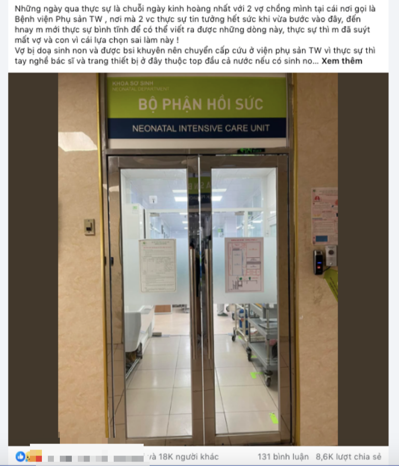 Trước đó, hai bài đăng của vợ chồng chị Q.A "tố" bác sĩ Bệnh viện Phụ sản Trung ương tắc trách được chia sẻ rầm rộ trên mạng xã hội. Theo lời kể của chị Q.A, khi đang mang thai ở tuần 20, chị bị ngắn cổ tử cung nên được khâu vòng. Đến tuần 24, chị A. có biểu hiện đau bụng nên nhập bệnh viện tỉnh Bắc Giang. Tại đây, chị được chẩn đoán có cơn đau chuyển dạ không đẻ, được nhập viện, điều trị.