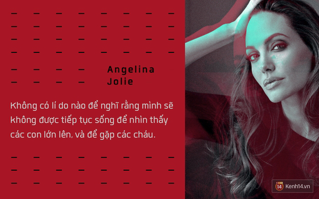 Sinh ra trong gia đình có đến ba thành viên mắc ung thư vú và ung thư buồng trứng. Cả mẹ, bà ngoại, và cụ ngoại của Jolie đều đã qua đời vì ung thư ở độ tuổi 56, 45, và 53. Bản thân Jolie cũng mang trong mình gen lỗi BRCA1 khiến cô có đến 87% nguy cơ mắc ung thư vú và 50% mắc ung thư buồng trứng. Đối với một người phụ nữ và một người mẹ, đặc biệt còn là biểu tượng quyến rũ của Hollywood, quyết định phải cắt bỏ vòng 1 là điều không hề dễ dàng, Tuy vậy, trong nỗi đau bệnh tật, Angelina Jolie vẫn nhìn thấy ánh sáng của tình yêu dành cho gia đình mình và những điều tích cực. Cô nghĩ đến những đứa con và hạnh phúc khi chúng không phải lo sợ thấy mẹ mắc căn bệnh ung thư vú, và đồng thời "tự nhủ với bản thân phải bình tĩnh, mạnh mẽ, và rằng tôi không có lý do gì để nghĩ rằng mình sẽ không được sống để nhìn thấy các con lớn lên, và để gặp các cháu của mình".