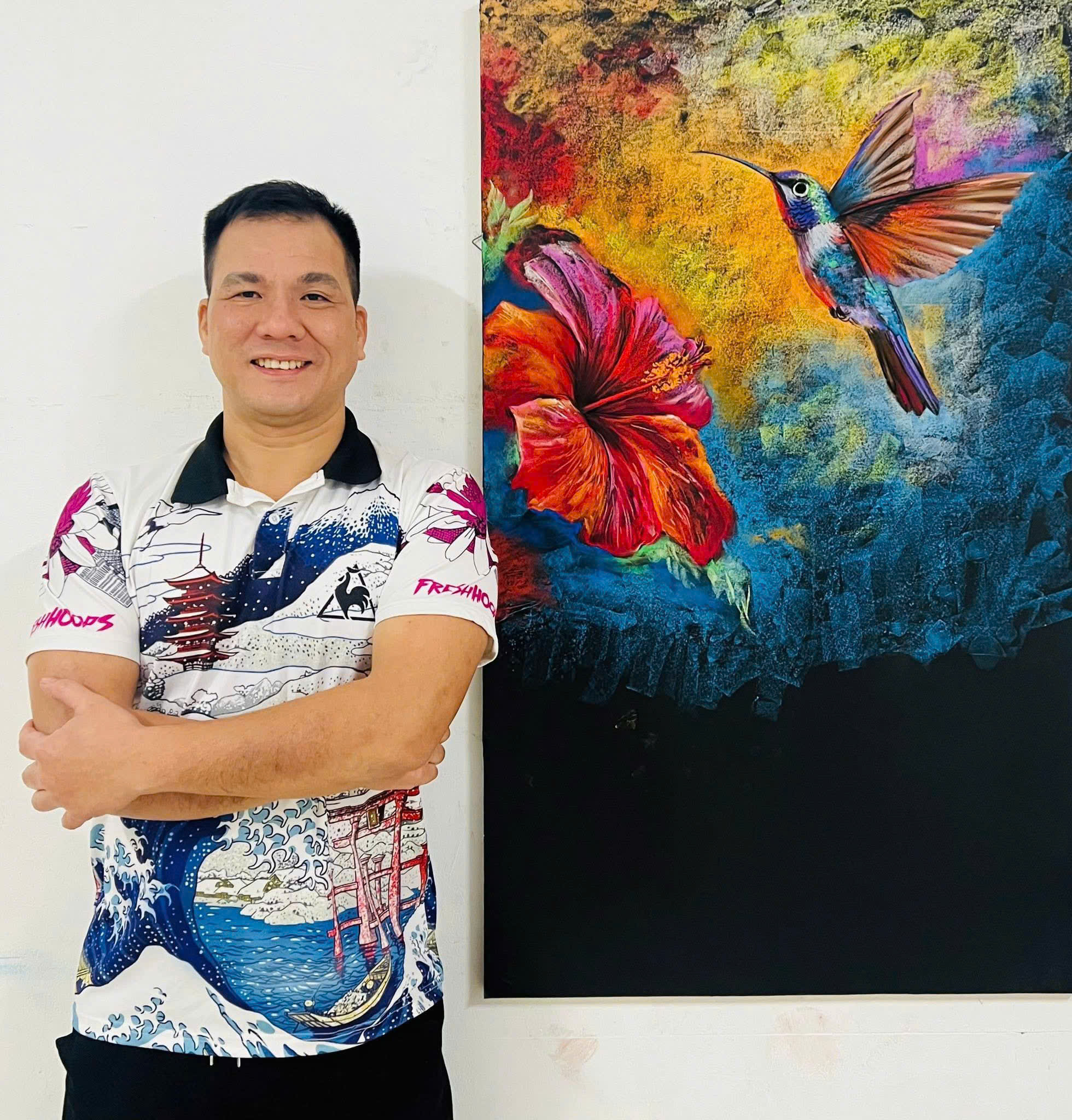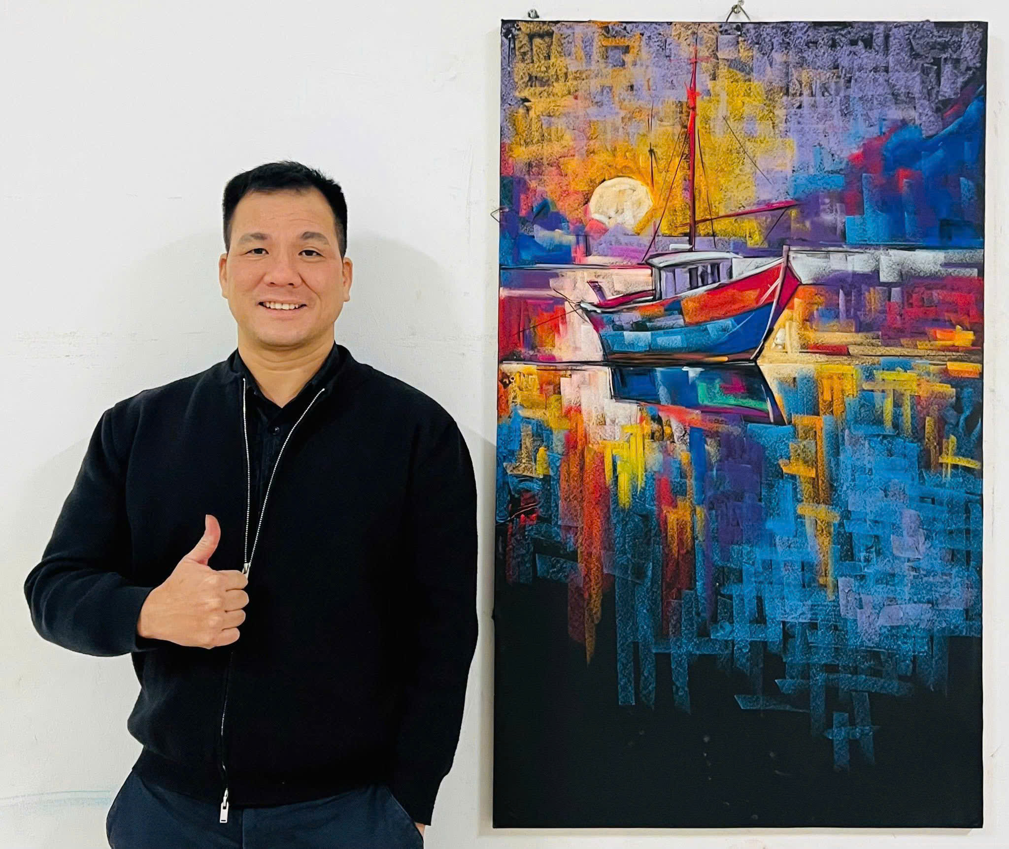 Một bức tranh phấn màu khổ lớn, dưới bàn tay của thầy - nơi những đường nét mềm mại lại mang những thông điệp mạnh mẽ đến mức tưởng chừng như người xem có thể nghe thấy nhịp đập của từng mảng màu. Có lẽ, với thầy, mỗi bức tranh không chỉ mang nét nghệ thuật đơn thuần mà thầy còn đặt vào đó những 'âm sắc' và 'trọng lượng': Chiến sĩ Công an nhân dân, thầy thuốc, trẻ em, nhà giáo, nhà báo, những âm thanh cổ động, dòng chảy của sự sống từ hoa sen, và trên hết là lời nhắc nhở về cuộc chiến chống HIV/AIDS – một trận tuyến thầm lặng không tiếng súng nhưng chưa bao giờ nguôi khốc liệt.