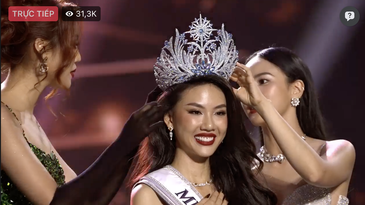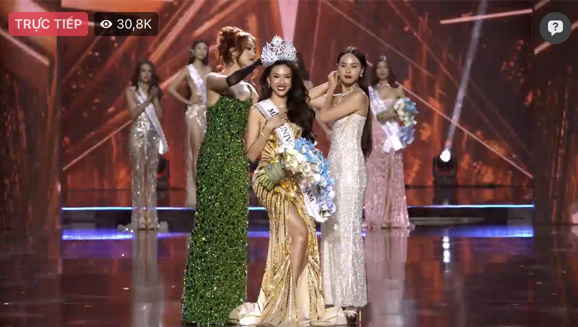 Á hậu Lan Khuê và giám đốc quốc gia Miss Universe Vietnam trao vương miện cho Tân hoa hậu