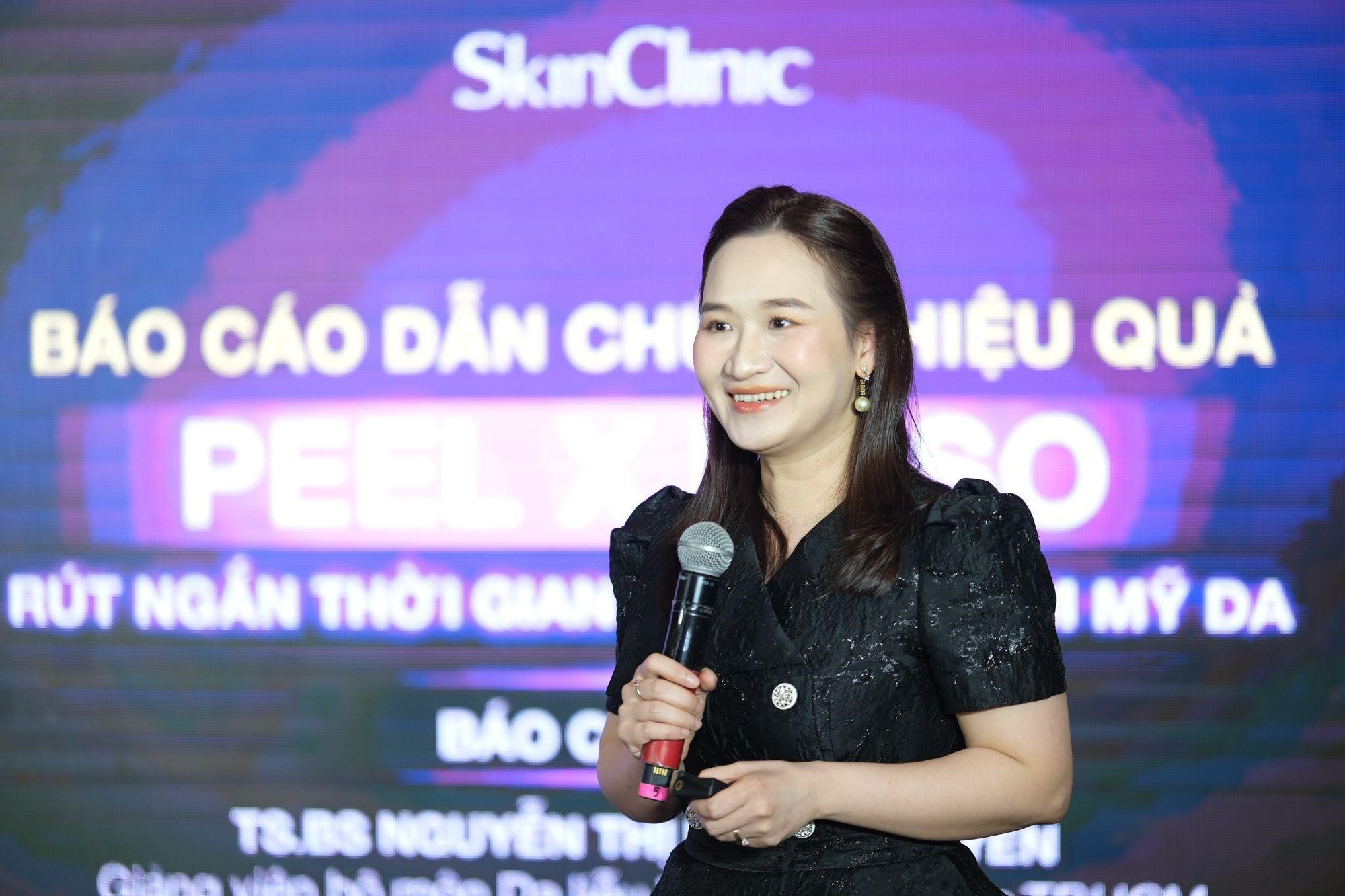 Góp mặt tại sự kiện, TS.BS Nguyễn Thị Hồng Chuyên - Giảng viên bộ môn Da liễu Đại học Y Dược TP.HCM; Trưởng đơn vị Da liễu - Thẩm mỹ da Bệnh viện Nguyễn Tri Phương, cũng là bác sĩ tiên phong sử dụng liệu trình PEEL x MESO từ SkinClinic đã có những chia sẻ lâm sàng thực tế trong bài báo cáo với chủ đề:"Báo cáo dẫn chứng hiệu quả PEEL x MESO rút ngắn thời gian điều trị thẩm mỹ da". Theo chia sẻ của TS.BS Nguyễn Thị Hồng Chuyên, trường hợp thực hiện liệu trình PEEL x MESO sẽ cho hiệu quả an toàn và đảm bảo vấn đề điều trị da hiệu quả đến sớm hơn so với trường hợp trị liệu đơn.