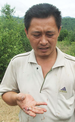 | Anh Trần Quốc Trung bị cá sấu cắn bàn tay khi bơm nước. (Ảnh: PLTPHCM) |