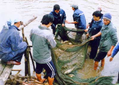 Thu hoạch cá để chuẩn bị vào vụ. Ảnh: Văn Chiến |